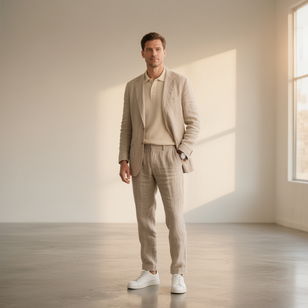- Knit tailoring – knitted blazers and polos replace rigid shirting, merging comfort with structure.