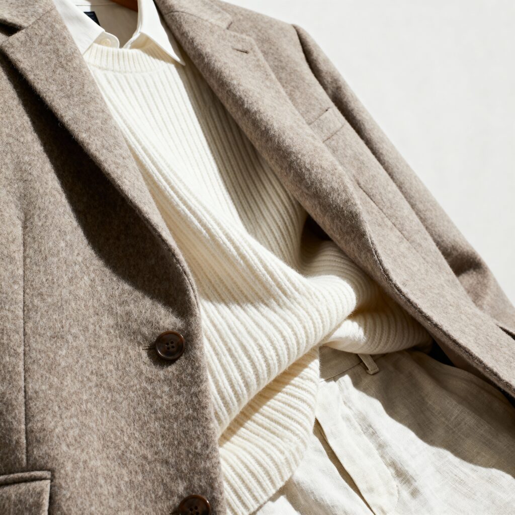- Subtle pattern play – tone-on-tone stripes and shadow checks add quiet complexity.