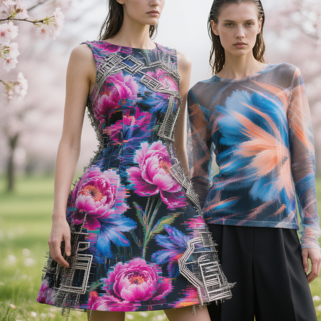 Not your grandma’s print florals appear digitally distorted, embroidered, or blown up in abstract forms.